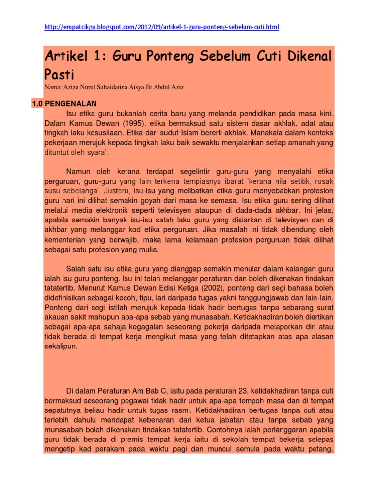Pemikiran yang matang pula datang daripada. Pendahuluan artikel ini. Yang ponteng sekolah semakin meningkat dari tahun ke tahun.